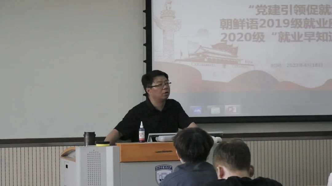 积极发挥党建引领促就业工作,通过就业座谈会了解毕业生的各种疑惑,更好的为朝鲜语专业的同学进行就业指导。