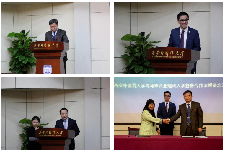 承办,马来西亚理科大学人文院口译与笔译研究中心协办。马来西亚驻西安总领事馆总领事林雲亮、马来西亚驻西安总领事馆副领事白博然、马来西亚驻华大使馆教育处主任穆罕默德·沙烈胡丁参赞、马来西亚理科大学副校长拿督娜黎玛·莎玛教授、马来西亚理科大学人文学院翻译系笔译与口译中心主任兼此次研讨会组委会主席吴尚雄副教授、我校党委书记白黎、副校长李京昊、国际合作与交流处、肉漫