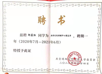 亚非文化传媒中心主任兼团支书,负责学院微信公众号推送累计一百五十余篇