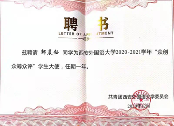2018年炎热的夏,鸣叫的蝉,她抱着赤子的拳拳之心,孤身拖着行李踏入XISU。四年来,她战胜一切困难与挫折,从未停止逐梦的脚步;她敢于打破自身,重新塑造一个更耀眼的自己;她热心公益,用自己的一颗炽热的心,为贫困地区送去了一份温暖······正是宝剑锋从磨砺出,梅花香自苦寒来,她的所有的付出成就了如今闪耀的自己。邹晨钰,足履星辰逐梦,怀抱蕴玉清辉。