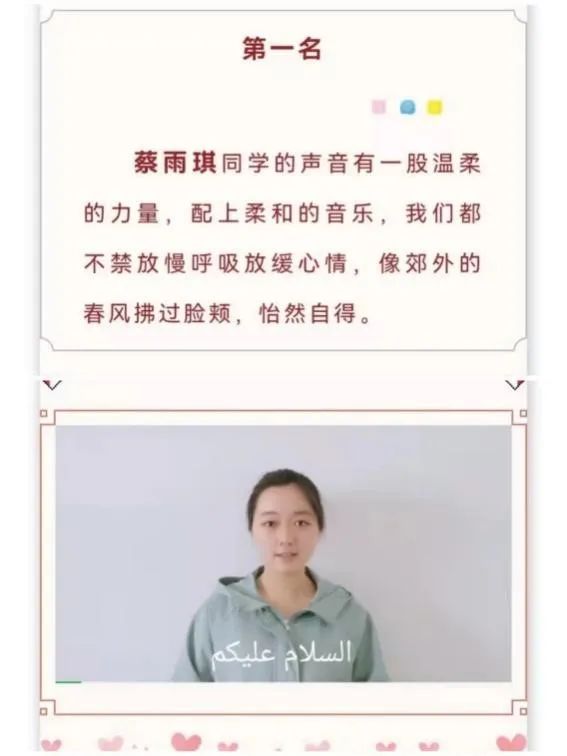 我也很感激本科阶段学院、老师对我的培养和教育,同学朋友对我的支持和激励,让我充实忙碌地享受了自己的大学生活。目前我学习到的专业知识都是比较基础的,未来的学习中,我会着重提升自己的口译、笔译能力,广泛阅读书籍,丰富自己关于阿拉伯世界文学、历史方面的知识。