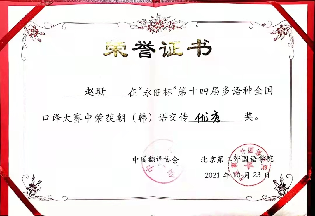 “永旺杯”第十四届多语种全国口译大赛优秀奖