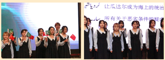 和平友好是我们秉持不变的初心使命,中伊友谊、中巴友谊、中泰友谊、中马友谊、中非友谊源远流长,历久弥新。波斯语的《爱是幸福的开始》、乌尔都语的《中巴友谊万岁》、泰语的《这份情谊永远不会变》、马来语的《中马携手一路同行》,既欣赏到波斯舞蹈的欢乐热情与中国传统舞蹈的交融碰撞,又领略到泰国泼水节的温婉尔雅和东南亚的服饰之美。菲律宾语同学生动还原了《苏禄王来访》,演绎出两国友谊的源远流长,斯瓦希里语的《中非友谊永称赞》在小提琴小提琴的优雅旋律里赞美中非之间的深厚友谊。