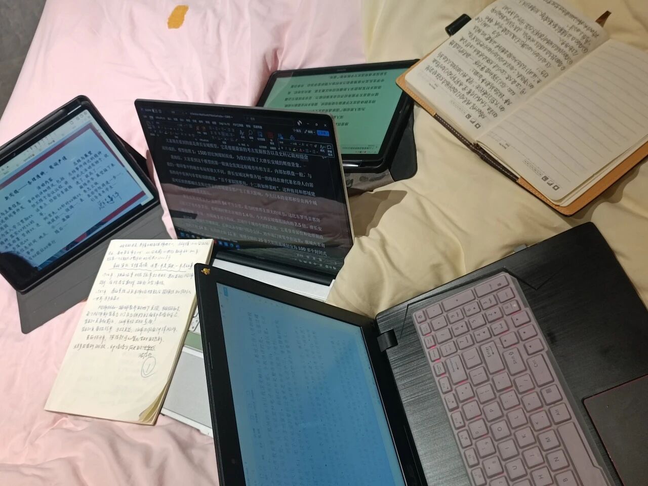 深夜复盘会上,大家一边总结今天的工作一边安排后续行程,我突然想到今天团队探访桑皮纸非遗工坊,那薄如蝉翼却韧性千年的桑皮纸:“它像不像我们的实践?传统与现代交织,各族青年共绘——薄薄一张纸,承载的是文明交融的分量。”窗外,昆仑山的轮廓隐入夜色,而队员们笔记本上密密麻麻的维语笔记、推普教案、座谈心得,正悄然化作明日行动的星火。