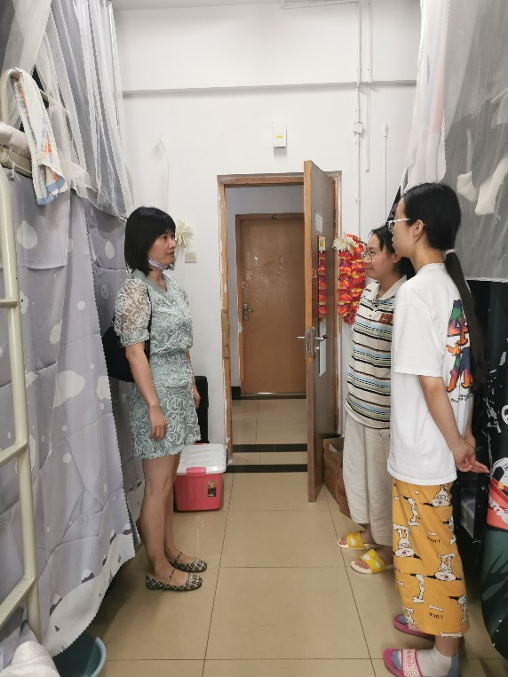党委副书记李佳和暑期值班辅导员来到学生宿舍看望暑期留校学生,并代表学院送上暑期慰问品。