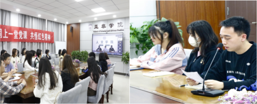 印地语专业学生张崇皓、阿拉伯语专业杨亚丁作为学生代表分别结合自己专业与实践经历分享了对胡杨精神的理解,表示要传承红色基因,在红色精神的引领下,坚定理想信念,到祖国最需要的地方去建功立业,努力成长为担当民族复兴大人的时代新人。