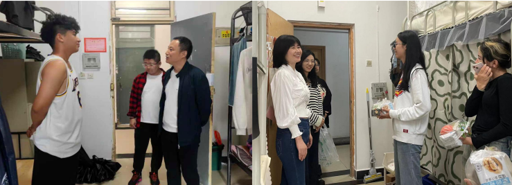学院领导老师走进留校学生宿舍,为同学们送上月饼和节日的衷心祝福,并与同学们亲切交谈,详细了解同学们的假期安排,耐心聆听同学们在校学习生活上的需求,解答同学们的成长疑惑,叮嘱同学们假期外出注意安全,多与父母联系。