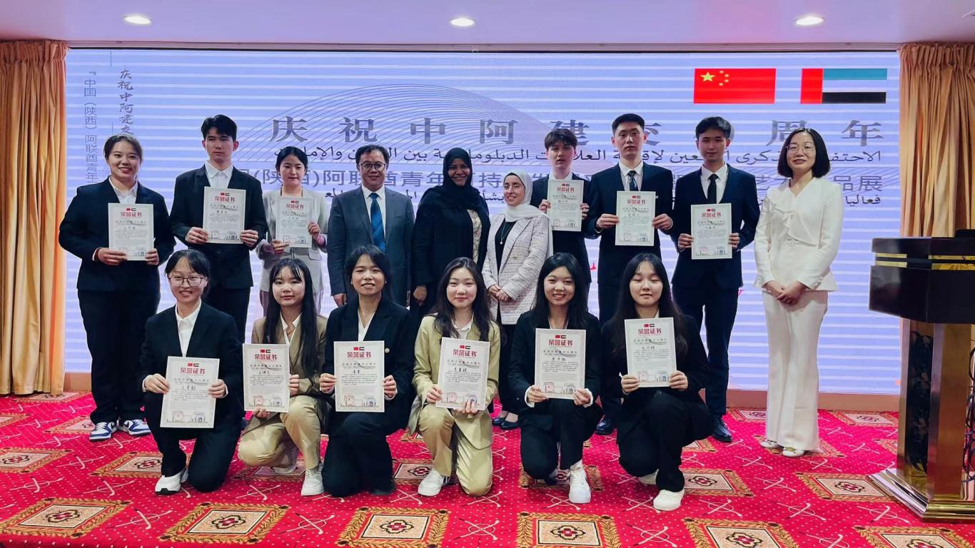 为庆祝中国与阿联酋建交40周年,推动陕西省和阿联酋在文化、教育等领域的交流合作发展友好关系,提升我校国际传播效能,在陕西省委宣传部和陕西省人民对外友好协会的支持下,由我校、阿联酋乌姆盖万大学、阿联酋侨星教育承办的“中国(陕西)阿联酋青年可持续发展对话会暨艺术作品展”于5月13日在迪拜顺利举行。该活动由陕西省文学艺术界联合会、阿拉伯青年综合发展理事会、阿联酋女企业家协会主办,西安美术学院、福森石油装备、国际青年绿色设计创新联盟协办。陕西省文联党组书记、常务副主席张琳、陕西省人民对外友好协会亚非部部长李凤丽、阿联酋女企业家协会副会长戴娜·阿米里出席活动,我校肉漫