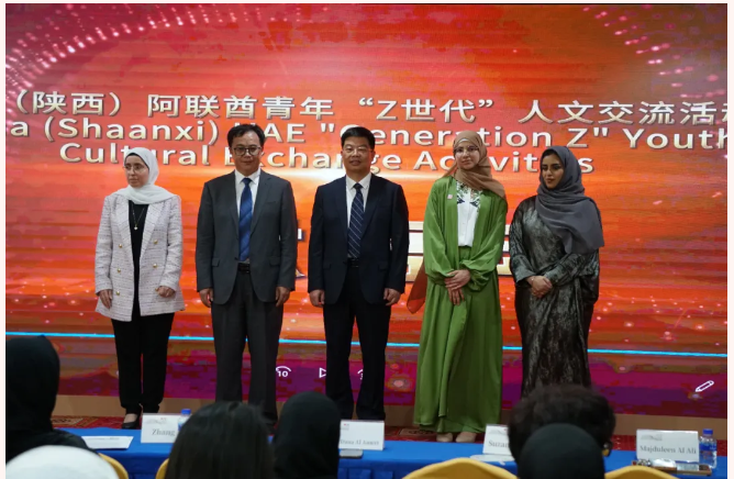 青年学生与当地大学生围绕“中国为可持续发展实施的绿色方案”“青年如何为可持续发展赋能”“教育可持续发展的未来”等主题分享青年助力可持续发展的行动和建设中阿可持续发展良好关系的美好愿景。活动现场还举行了“庆祝中阿建交40周年 中国(陕西)阿联酋青年‘Z时代’人文交流活动”启动仪式,计划将在今年举办阿联酋青年陕西行、陕西青年阿联酋丝路行等活动。