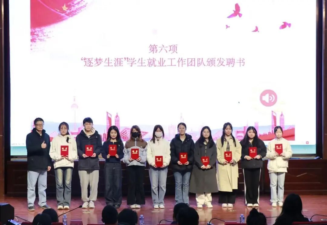学生职业规划与就业指导实施方案》,学院成立成立“逐梦生涯”学生就业工作团队,从低年级中以就业创业为目标导向的学生中招募,主要工作是开展校企对接、就业信息搜集、毕业生经验分享和企业、校友授课等。启动仪式上,校就业指导中心主任杨小江为“逐梦生涯”学生就业工作团队颁发聘书,团队负责人燕佳雪表示将鼓励同学们要积极利用学院平台,不断探索自己的职业兴趣和发展方向,努力实现自己的职业目标。