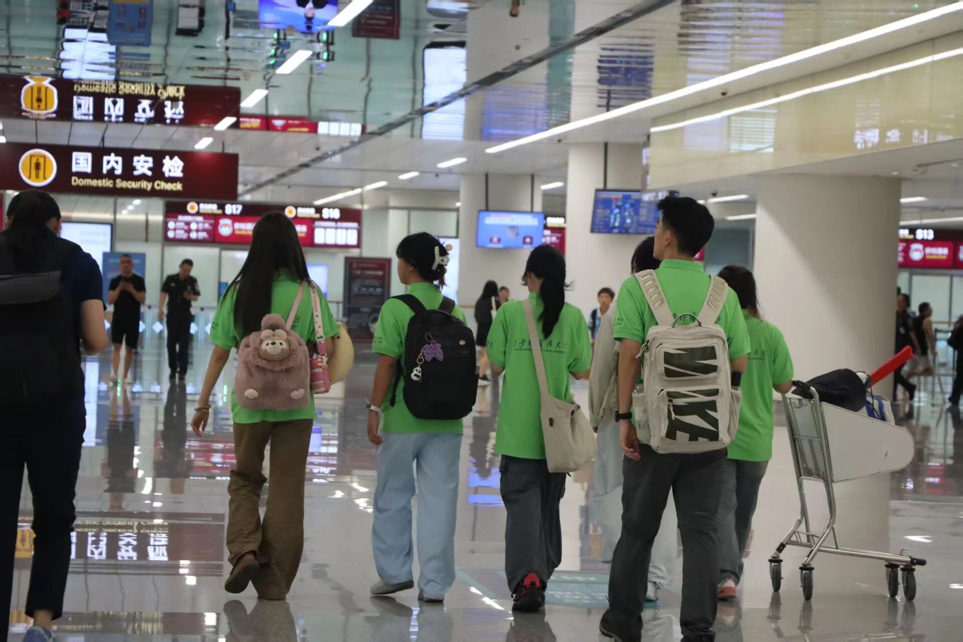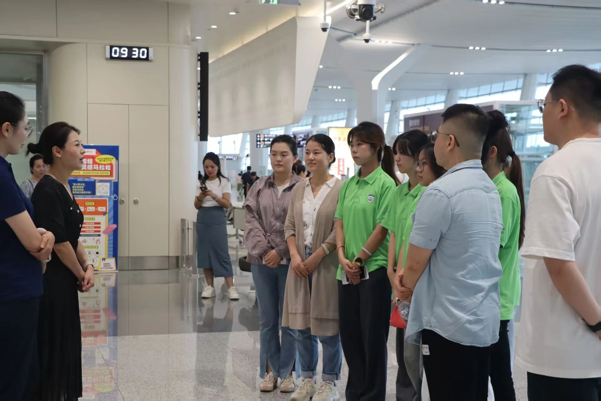 启程前,学院党委书记柯娓专程机场送行。她亲切握手,关切叮嘱安全,目光赞许着队员们的坚定。柯书记语重心长,强调此行意义非凡,代表学院与青年风貌,嘱托大家真正“沉下去”,用心感受边疆脉搏,用所学服务乡亲孩童,播撒民族团结种子,书写“青春奋斗,推普己任”的故事,并反复重申安全底线。临别目送,她的关怀如明灯,照亮初心,注入前行动力,成为实践团最坚实的后盾。