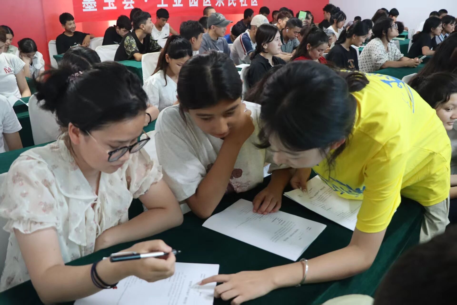 “职引边疆•语润乡村”暑期实践团满怀热忱,走进墨玉县工业园区乐民社区。此行旨在为社区学子与居民带来高考科目学习经验、校园成长指南及新媒体时代实用技能分享,助力边疆青年拓宽视野,启迪未来。