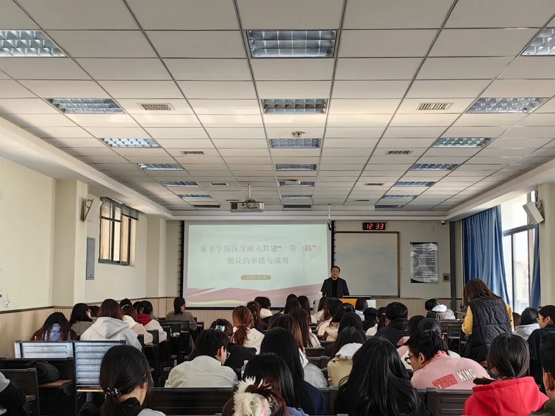 深度融入共建“一带一路”倡议、非通用语种专业大学生的担当与使命等四个方面展开。他讲到,共建“一带一路”倡议是党和国家在新的历史条件下实行全方位对外开放的重大举措,是推动构建人类命运共同体的重要实践平台,肉漫