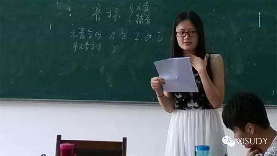 随着调查问卷拟定告一段落,东方语言文化学院暑期支教队伍迎来了第一次英语教学培训。本次培训由2011级辅导员王一宁老师主讲,2012级辅导员岳蓓补充教学。教学主要内容是英语元辅音音标认读。授课老师仔细讲解、示范,听课队员们认真记笔记、模仿老师的发音。辅音教学完毕后王老师让队员们一个一个朗读音标,并耐心地一个一个进行纠正。在音标方面学习有不足的同学,老师们还进行了格外努力的一对一教学,并鼓励大家认真学习,夯实基础。