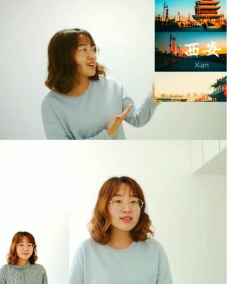 在上周的会话课上,同学们展示了自己制作的会话课作业——介绍家乡的视频。同学们展示了高超的视频剪辑技术,用AI头像和变声器,一人分饰两角进行对话表演。每位同学的视频作业都富有创意,独具匠心。