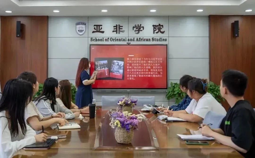 为了发扬红色文化,高度重视精神文明建设,带动广大青年深入学习、认真领会党的精神,亚非文化传媒中心于5月11日开展了“重温红色经典 坚定理想信念”红色经典诵读主题团日活动。习近平总书记说:“不要小看梁家河,这是个有大学问的地方。这个大学问就是有党的执政基础、有党和人民的血肉联系、有党全心全意为人民服务的根本宗旨。” 社员共同阅读《梁家河》经典片段,并展开思考和讨论。