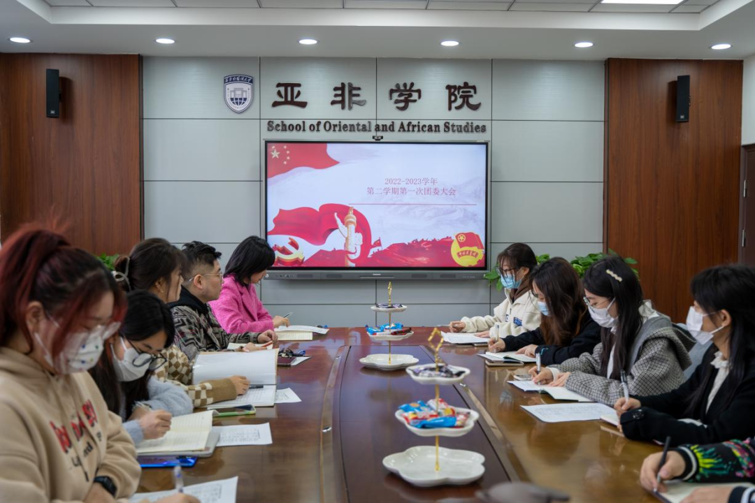第三次会议精神。坚定不移跟党走,做好党的后备军与主力军。要以习近平新时代中国特色社会主义思想武装头脑,坚定信念,加强理论学习,传承亚非精神,积极展现学院青年学子良好的精神风貌。