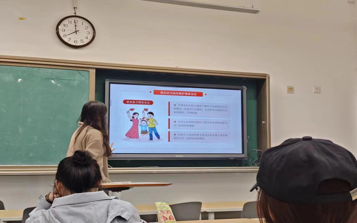 活动中,由2023级朝鲜语1班团支书吕旭瑞首先发言,她以“什么是总体国家安全观”为引入,并提出青年是维护国家安全的重要力量,要将国家安全意识融入日常生活,为实现中华民族伟大复兴的中国梦构筑起坚不可摧的安全屏障。